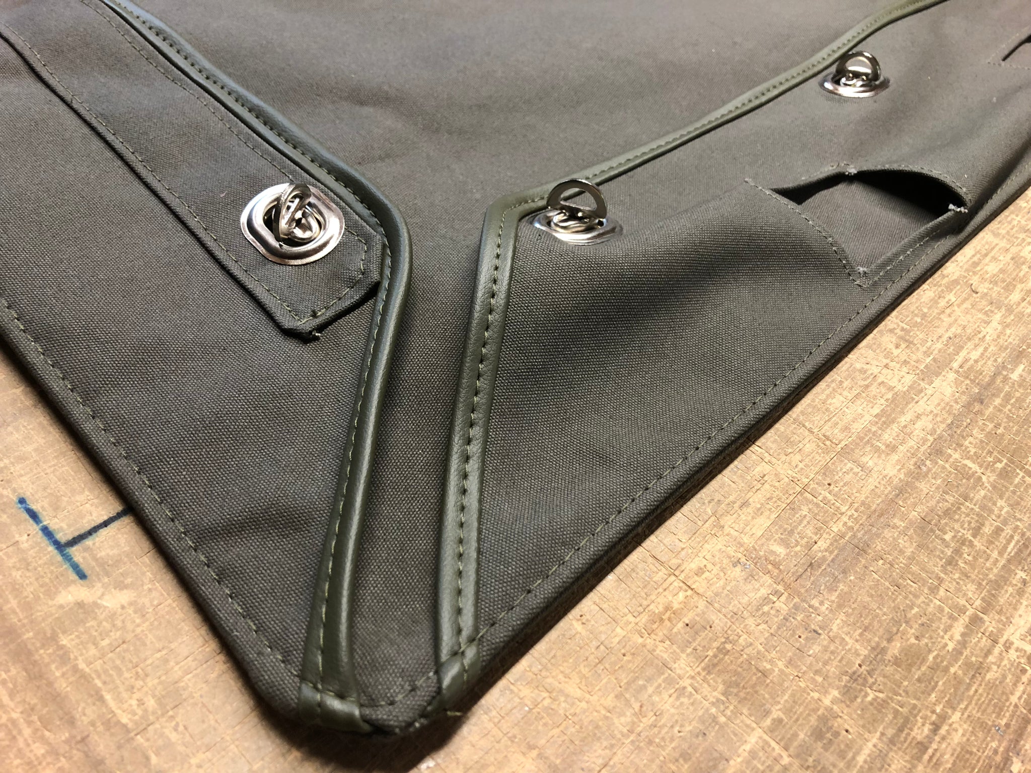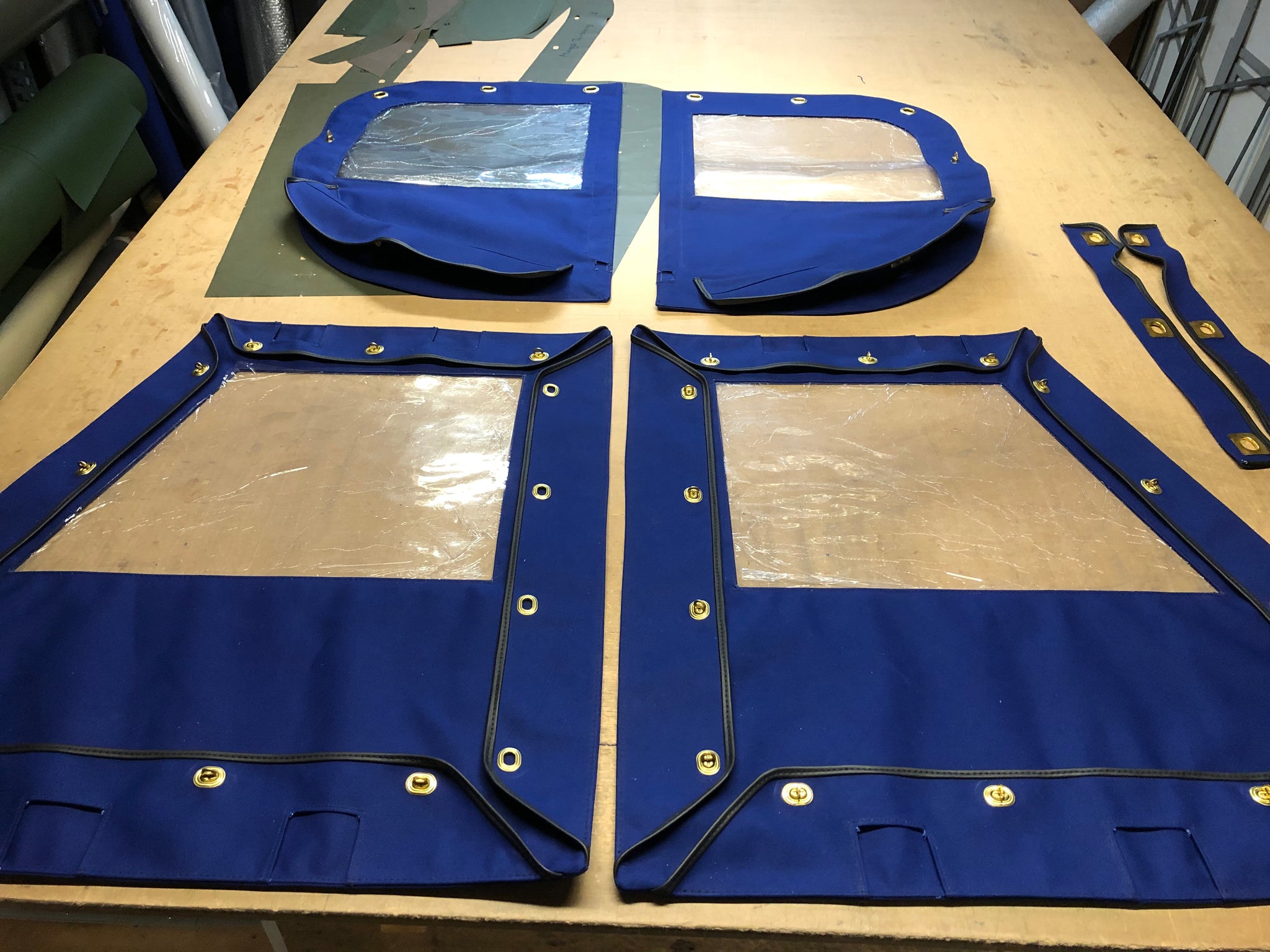 Die Türen sind Nachfertigungen aus 680g/qm Canvas. Sie werden einfach über die Metallrahmen der alten Türen gezogen und wie beim Original mit den Drehverschlüssen befestigt.