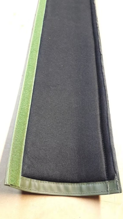 Ummantelung für den vorderen Verdeckspriegel im Bundeswehr Wolf. Die Ummantelung hat einen Umfang von 17 cm und passt somit prima um einen standard Heizungs Isolierschlauch, wie er im Baumarkt erhältlich ist.