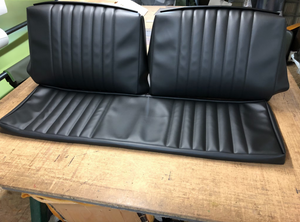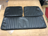Schwarze Kunstleder Sitzbezüge für die Rückbank des WV 181 Kübel in der "Luxus" Version. Es gibt zwei verschiedene Breiten, für den zivilen Kübel (breit) und für den Bundeswehr Kübel (schmal wegen der Gewehrhalter)