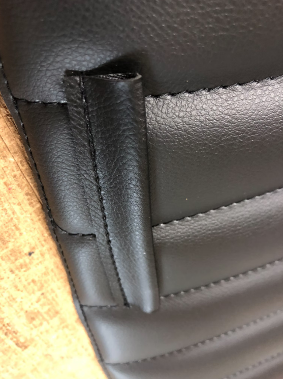 Die Bezüge sind mit 10mm Steppschaum unterfüttert und mit längs abgesteppten Nähten.Das sieht super aus und schmeichelt dem Gesäß der Fond Passagiere ;-)